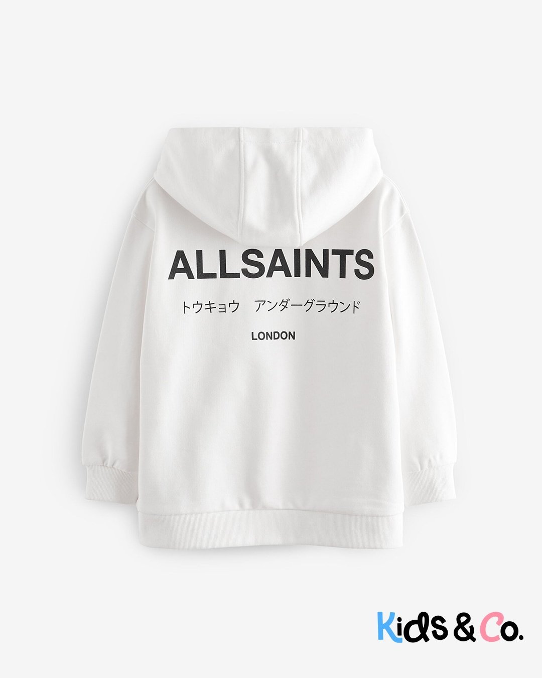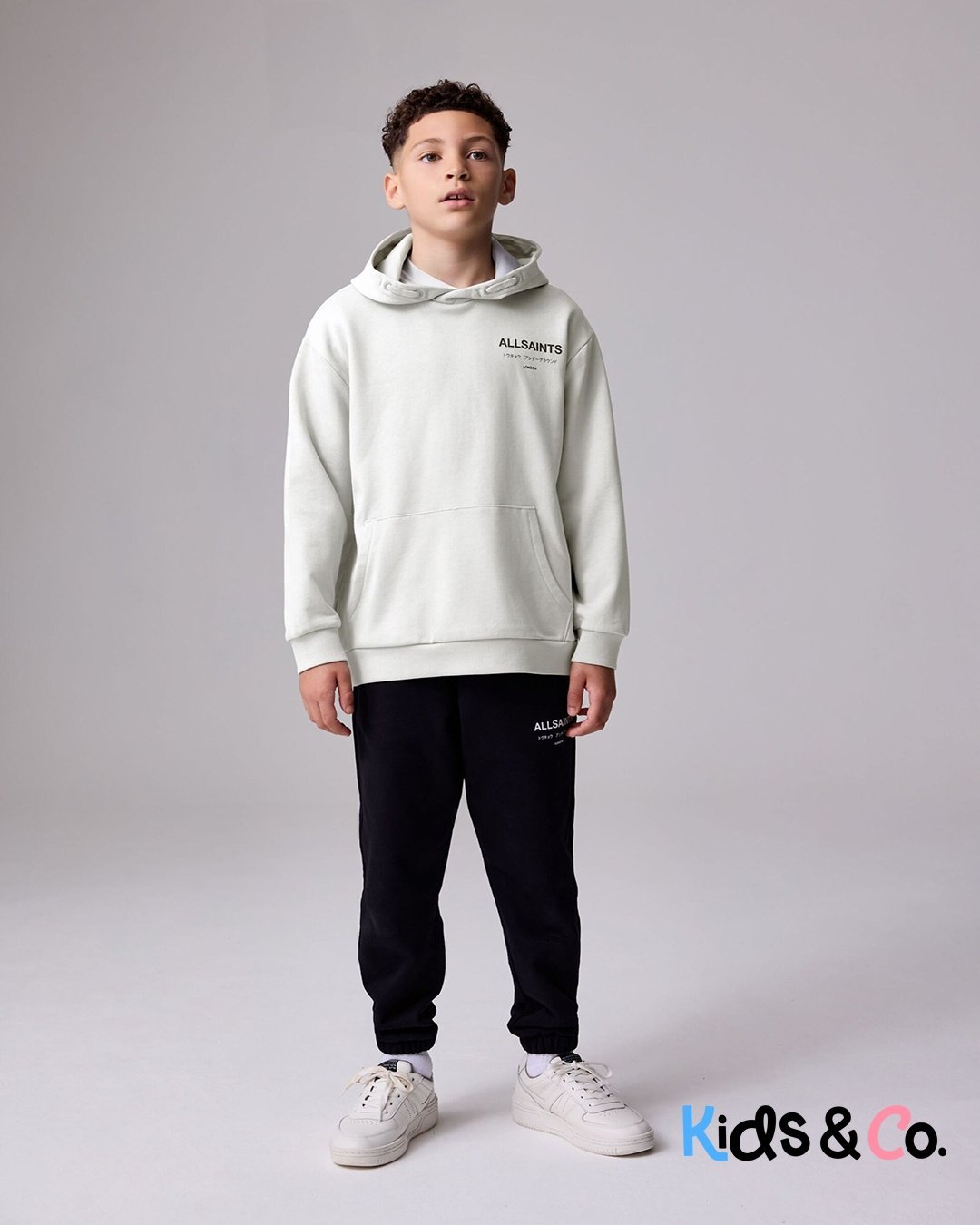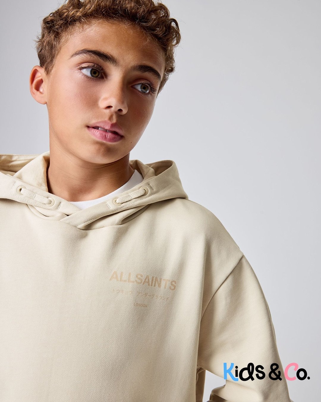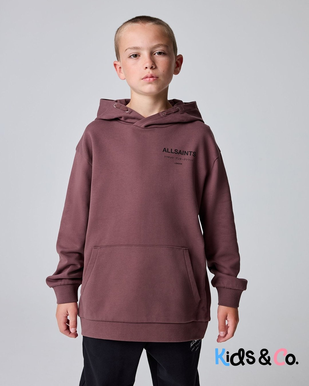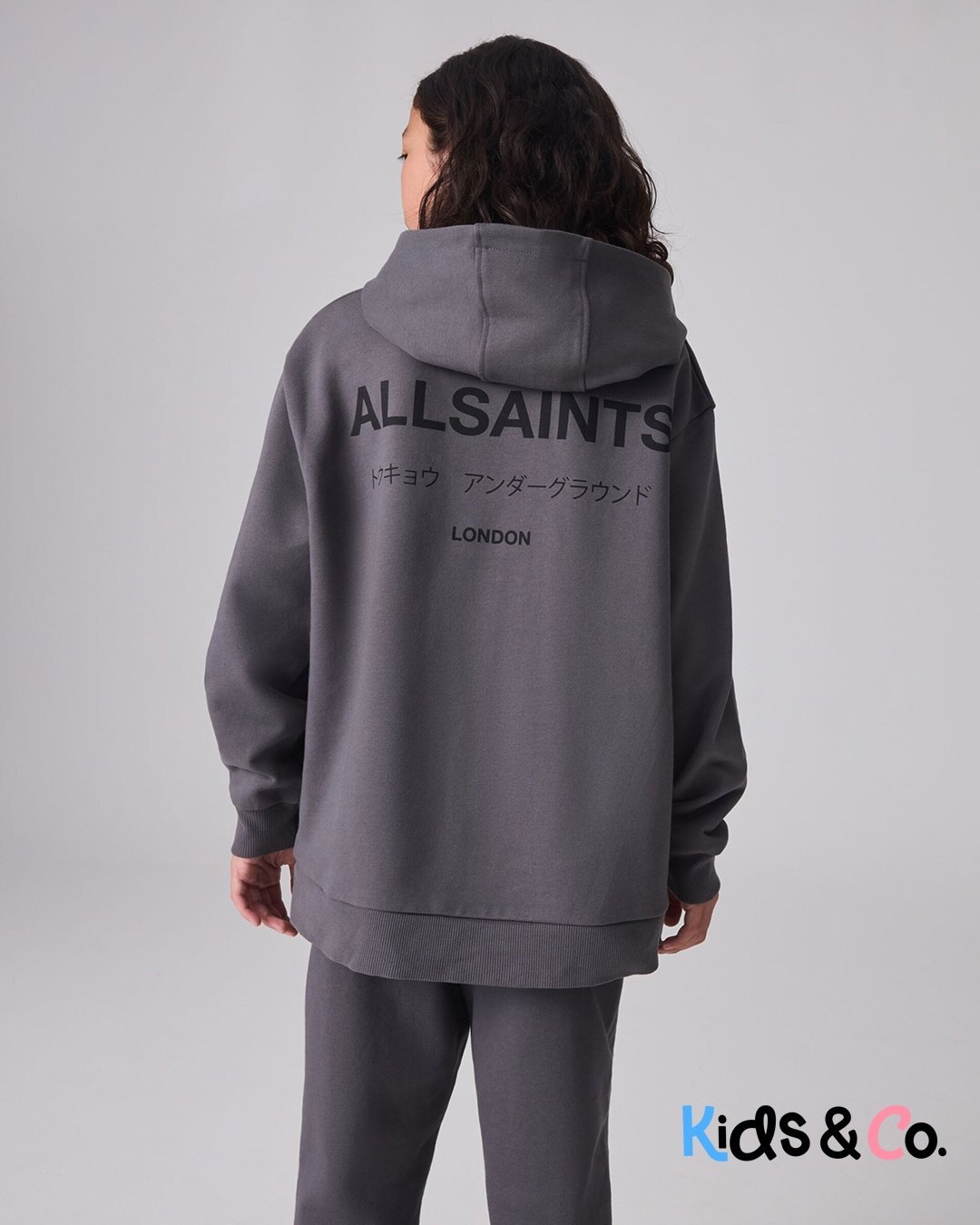 Keep them wrapped up in style with this smALLSAINTS Underground hoodie. A unisex design that delivers an oversized fit, this classic jumper made from soft cotton also has a kangaroo pocket on the front with the iconic AllSaints signature logo on the chest and back. Hooded Oversized fit 100% Cotton Unisex design Machine washable. Main 100% Cotton. Cuffs 95% Cotton, 5% Elastane.