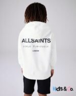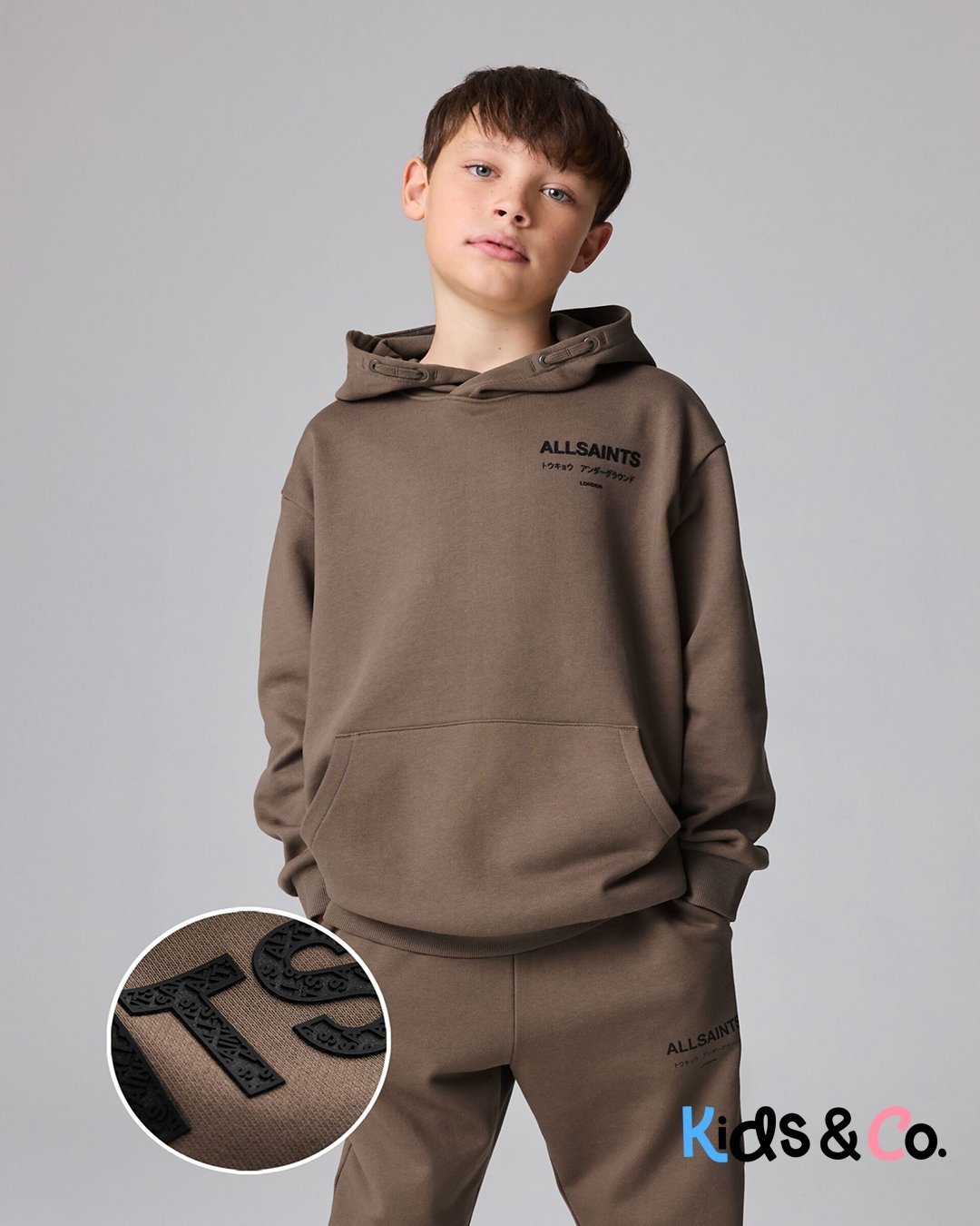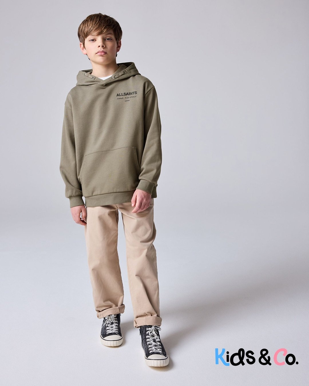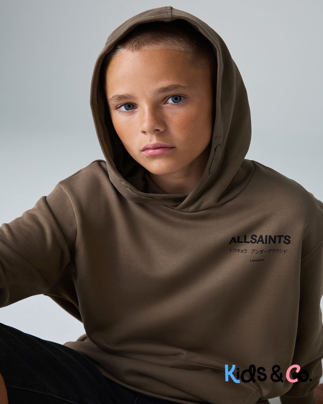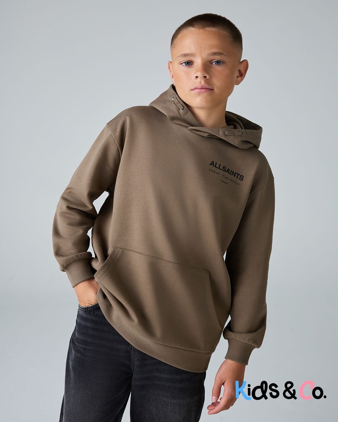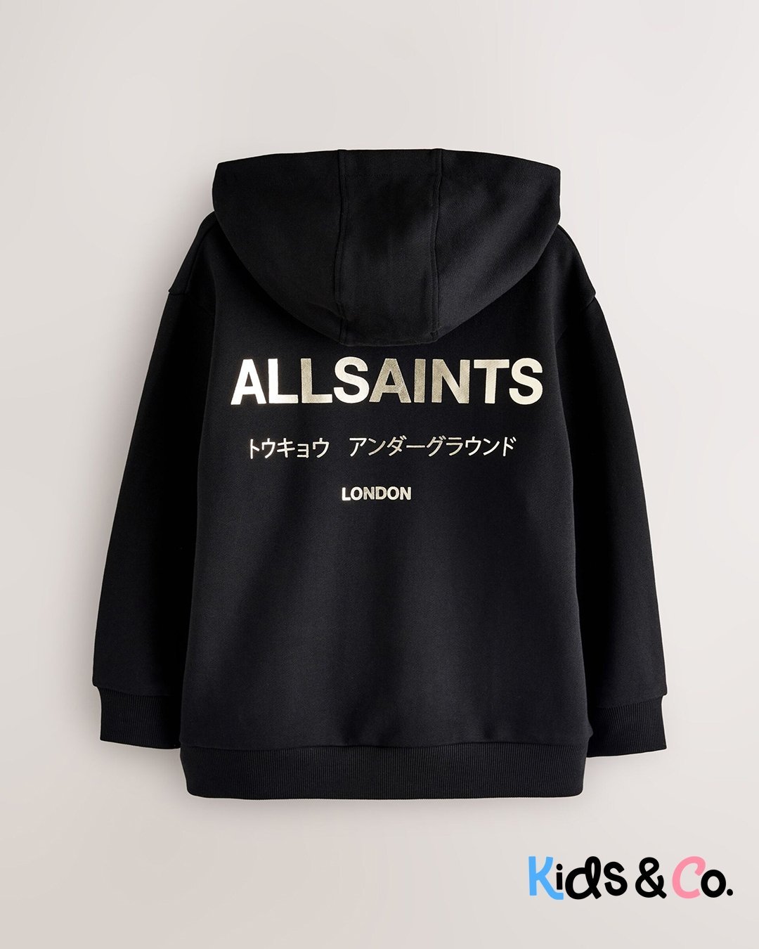 Keep them wrapped up in style with this smALLSAINTS Underground hoodie. A unisex design that delivers an oversized fit, this classic jumper made from soft cotton also has a kangaroo pocket on the front with the iconic AllSaints signature logo on the chest and back. Hooded Oversized fit 100% Cotton Unisex design Machine washable. Main 100% Cotton. Cuffs 95% Cotton, 5% Elastane.